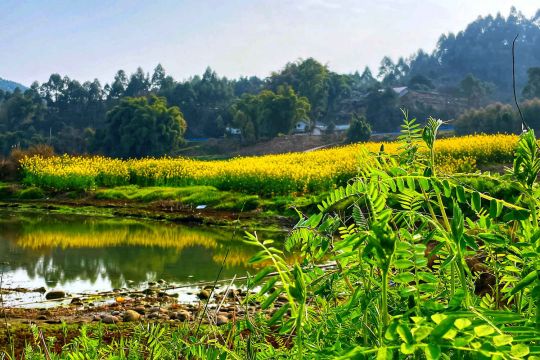 乌尤寺河边菜花黄